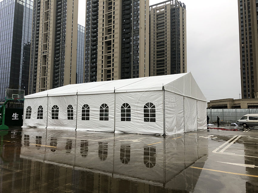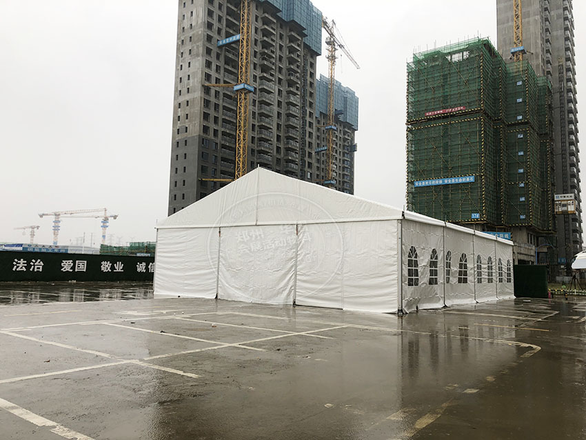 特性可抗8-10級大風。如圖我們可以看出鄭州華之熠所搭建的白色大篷房是在冒著大雨大風天氣搭建出來的,可見再