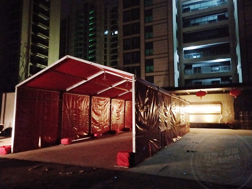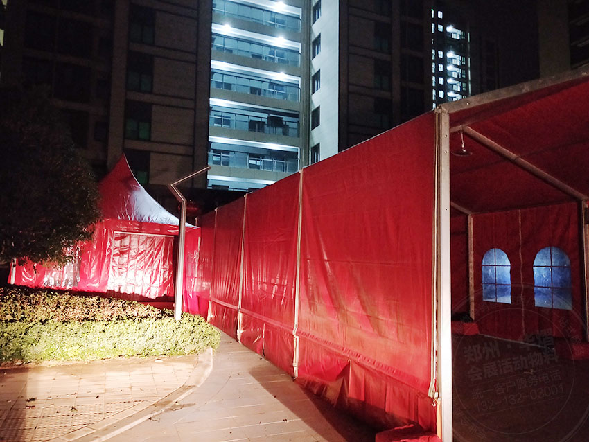 如圖,搭建在樓房前面的紅色篷房,顯得格外的喜慶,交房是一個喜慶而又神圣的節日,業主懷著愉悅的心情,來到樓盤處,看見紅色的篷房心情會更加的愉悅,紅色寓意著紅紅火火,寓意著未來在住房子的時候能夠日子紅火,日子開心。在璀璨熙湖交房中的篷房搭建,華熠僅僅用了半天時間就把紅色的大篷房搭建完成,可見華熠不僅有著搭建師傅為您搭建,在時間上也如約提前完成,為您節省了不少時間。不僅如此華熠還有著其他類型的篷房租賃服務。如:鄭州透明篷房租賃、鄭州玻璃篷房租賃、鄭州尖頂篷房租賃、鄭州球形篷房租賃等眾多類型供您選擇,以此來滿足您不同的活動現場需求。